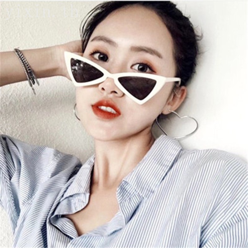 แว่นกันแดดทรงแคทอายทรงสามเหลี่ยมคว่ำ แว่นกันแดดแฟชั่น กรอบสีขาว