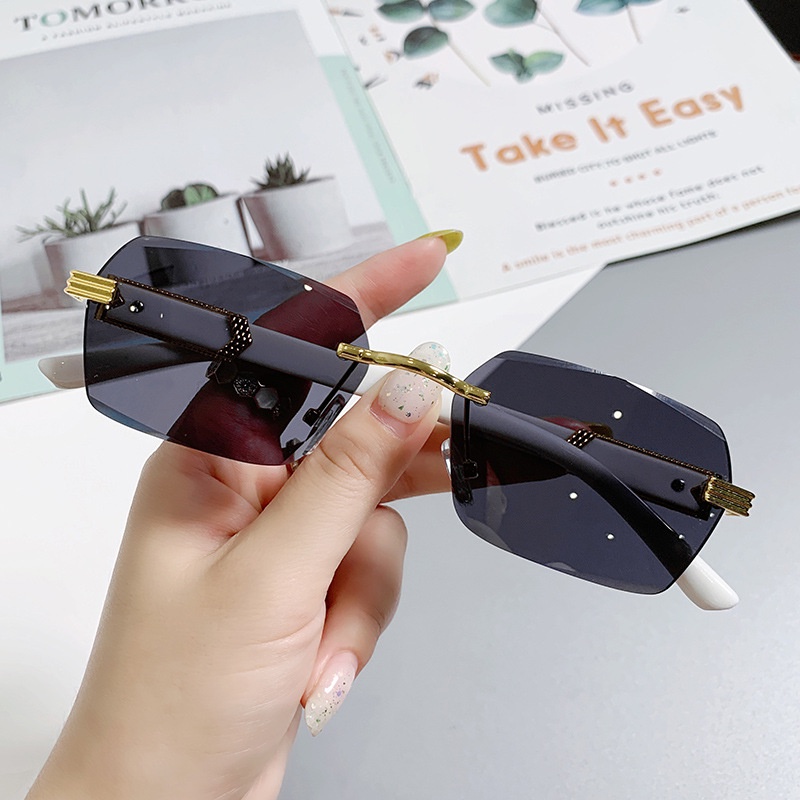 แว่นตากันแดด ไร้ขอบ กรอบขนาดเล็ก แฟชั่นสําหรับผู้หญิง ผู้ชาย