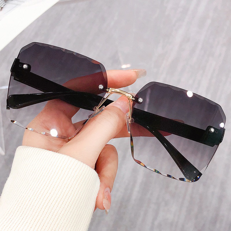 แว่นตากันแดด ไร้ขอบ ขนาดใหญ่ ป้องกันรังสียูวี แฟชั่นสําหรับผู้หญิง สวย ทนทาน