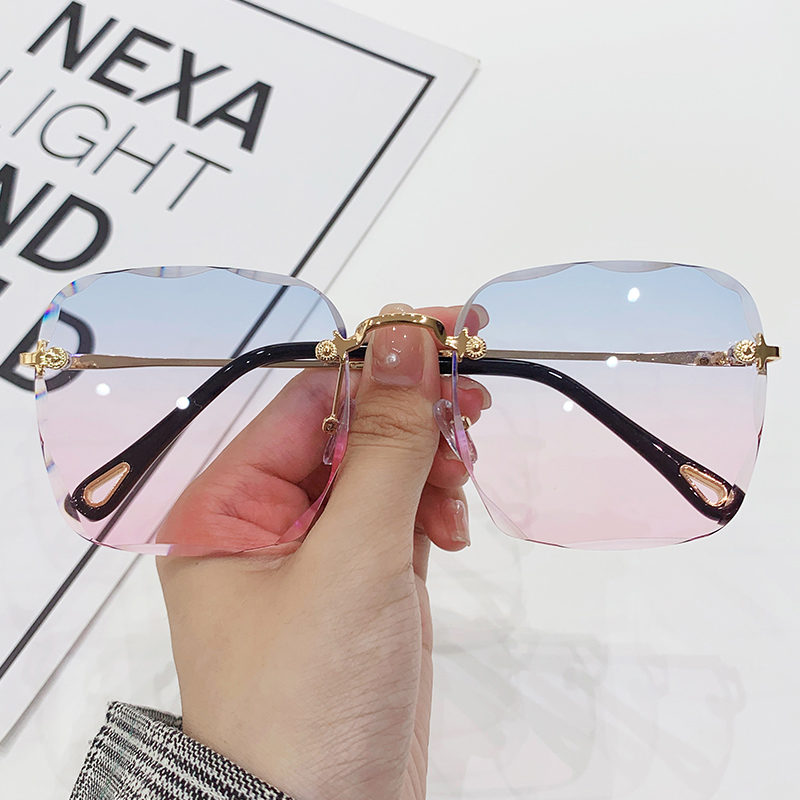 ใหม่ แว่นตากันแดดสําหรับผู้หญิง แฟชั่น ไม่มีกรอบ ยูวี 400 แว่นตากันแดดสําหรับผู้หญิง เลนส์สีฟ้า